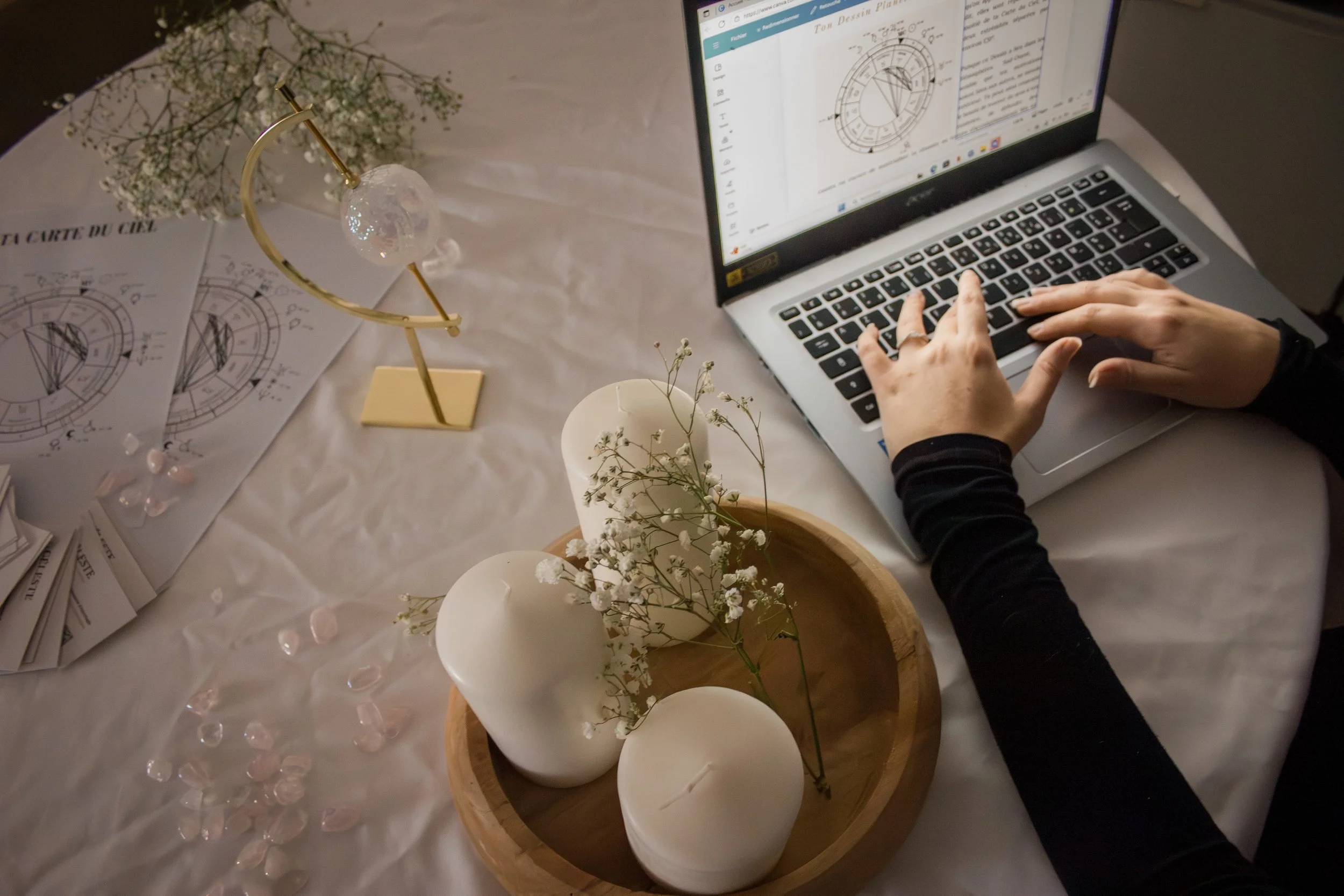 Je suis Chloé, Astrologue et Fondatrice de CÉLESTE. Je t’accompagne avec éthique et bienveillance, à la fois pour mieux te comprendre grâce à des analyses personnalisées mais aussi dans ton apprentissage de l’Astrologie au travers de Cours Particuliers et d’Ateliers et Formations.